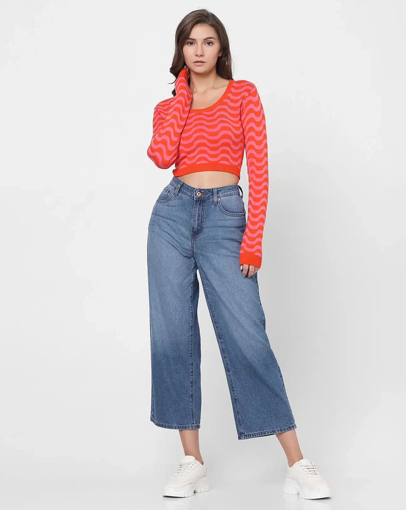 With their mid-rise waistline, these jeans provide a comfortable and flattering fit that sits just right on the hips. The wide leg design adds a touch of drama and flair, creating a fashion-forward look that’s sure to make a statement.