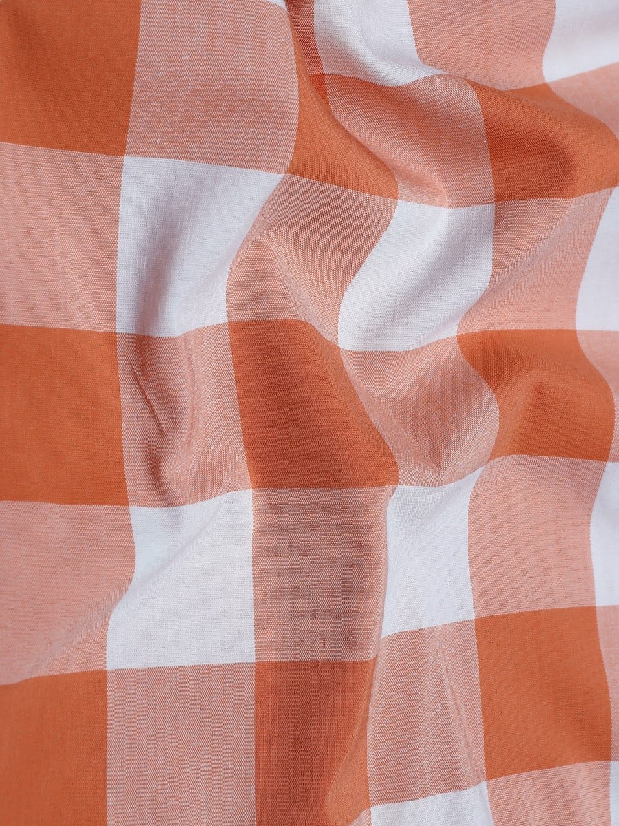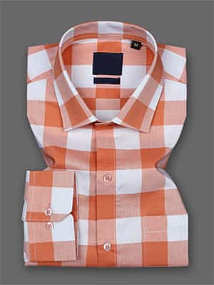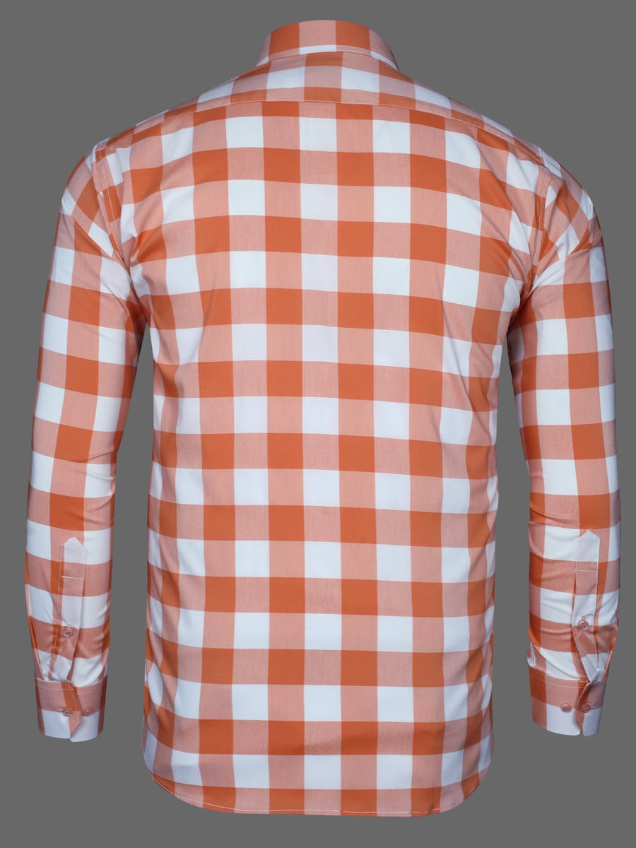 Bright White And Orange Checkered Dobby Textured Premium Giza Cotton Shirt