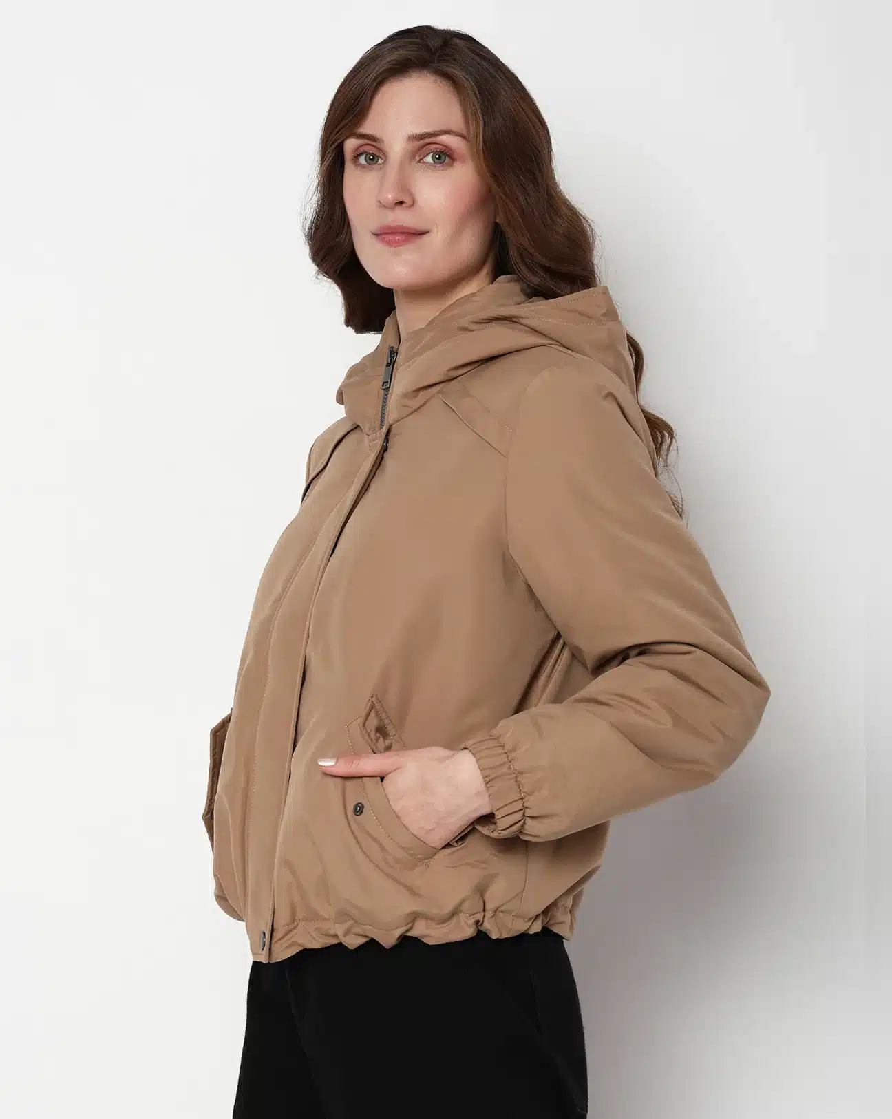Brown Padded Short Parka Jacket. Crafted to blend style and functionality seamlessly, this jacket is a must-have addition to your outerwear collection.
