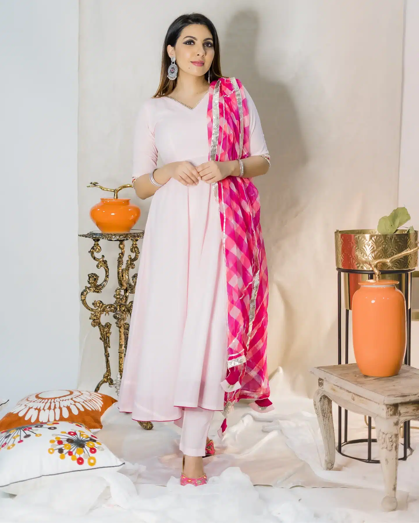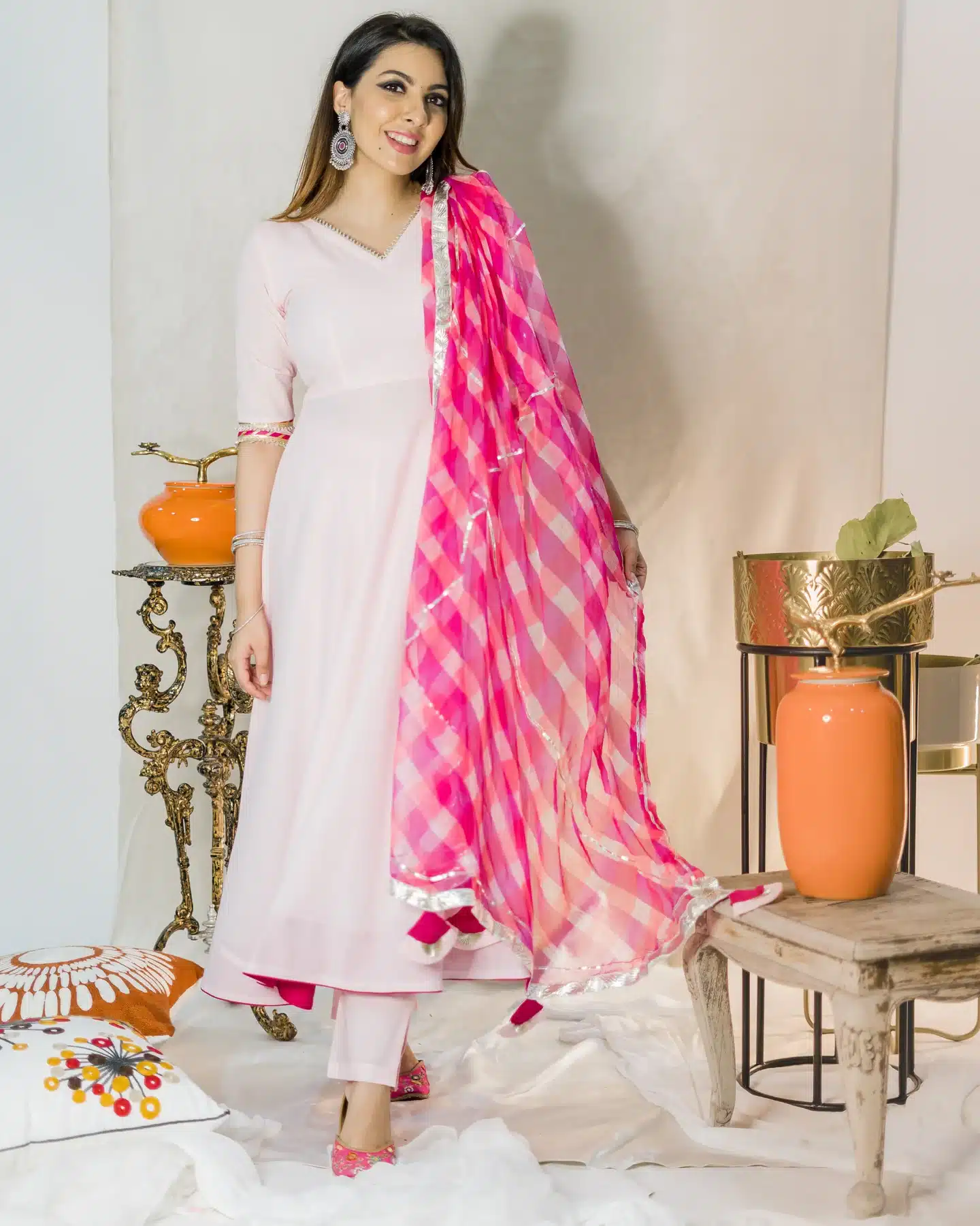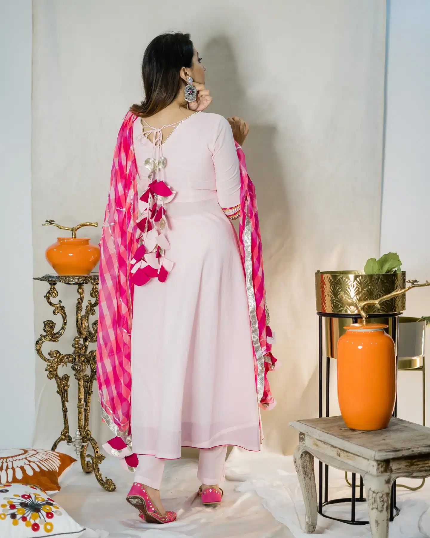 Pair it with delicate accessories for a soft and feminine look, or add bold statement pieces to make a dramatic entrance. However you style it, the Fairy Tale Leheriya Suit Set promises to turn heads and leave a lasting impression.