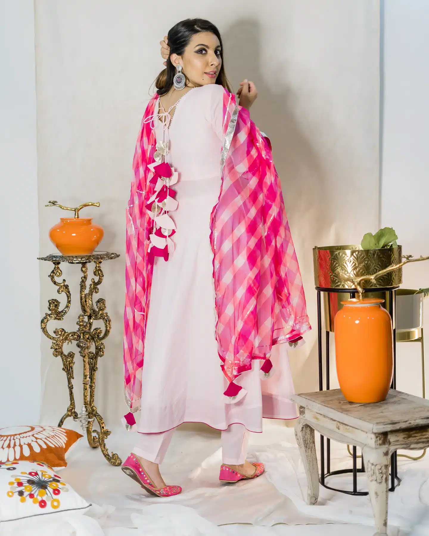 • Features: Whimsical Leheriya design, elegant silhouette