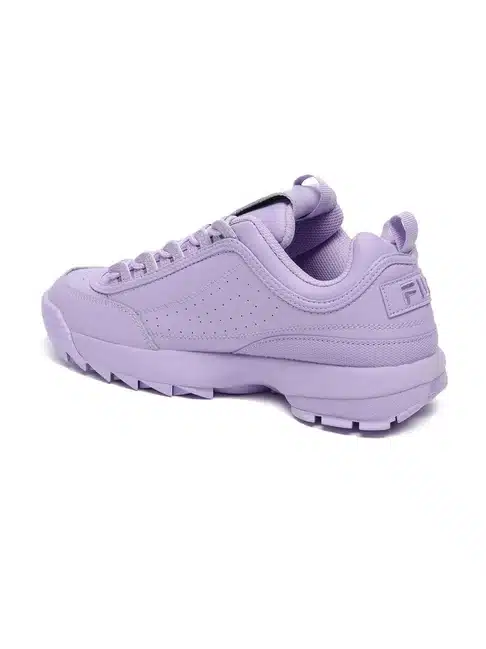 Fila Women’s Disruptor II Premium Lavender Sneakers – the epitome of bold style and undeniable comfort for the fashion-forward woman. Crafted with meticulous attention to detail and engineered for both durability and flair, these sneakers are designed to make a statement with every step.