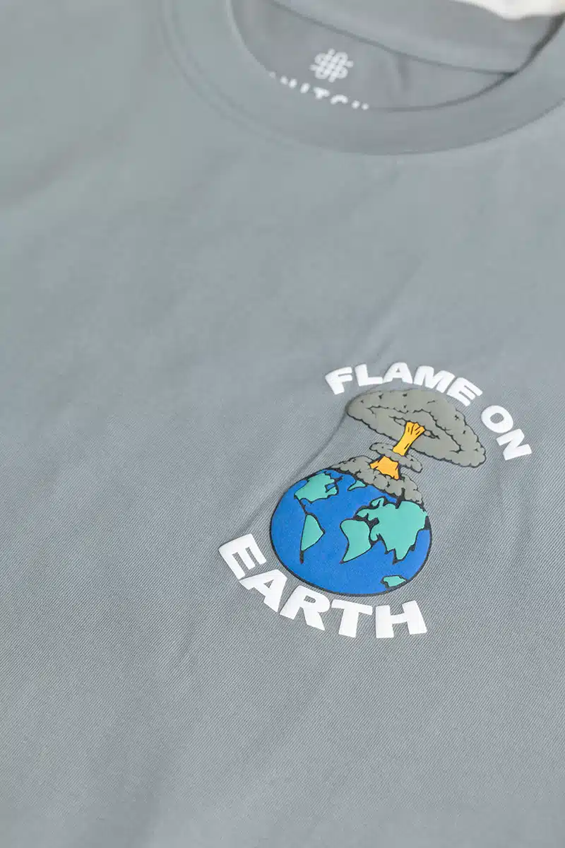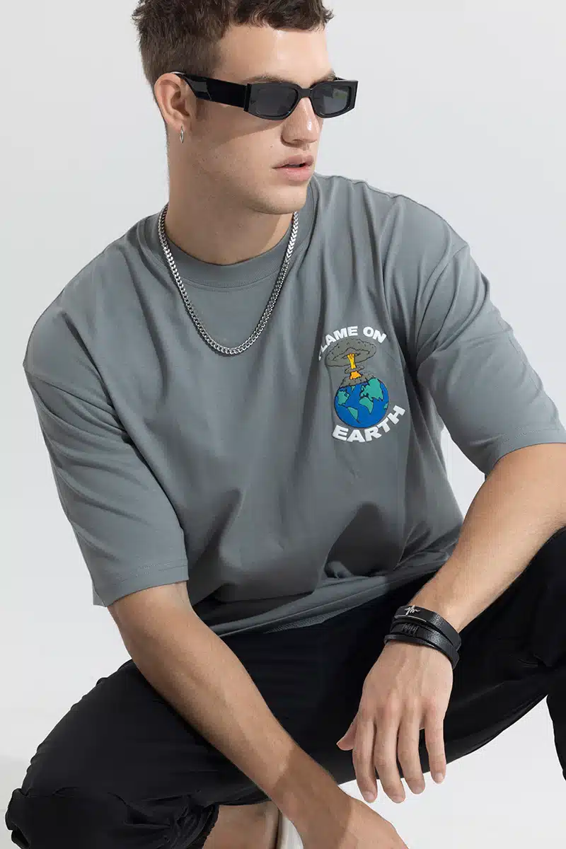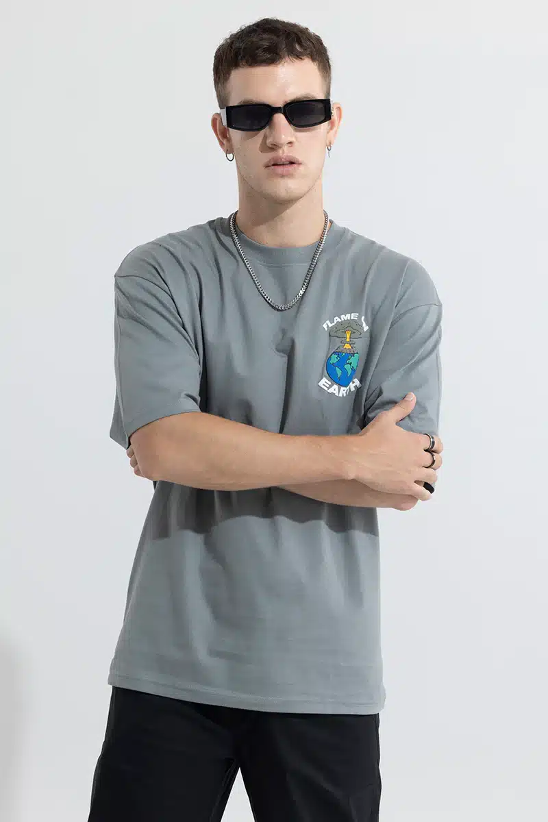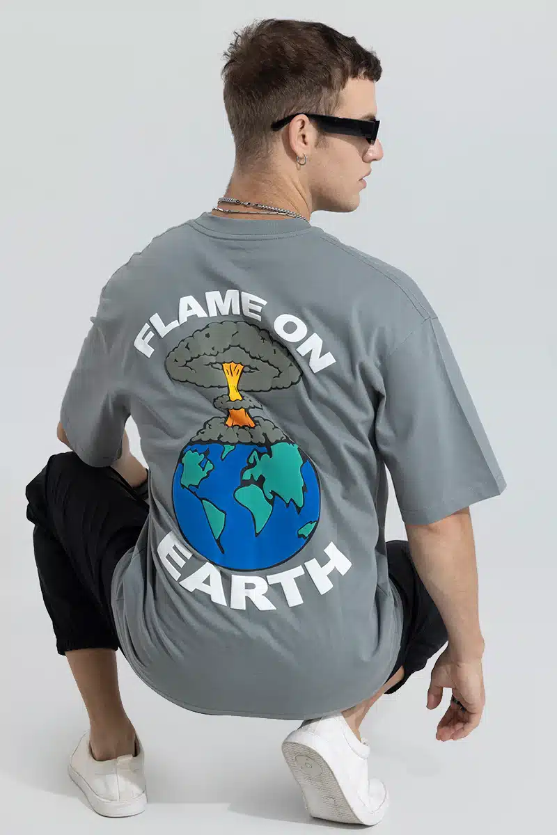 “Flame On Earth” Grey Oversized T-shirt, a fusion of urban edge and elemental charm that sets your style ablaze. Crafted for those who dare to stand out, this tee captures the essence of raw energy and urban sophistication.