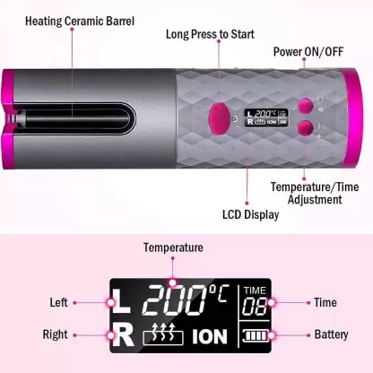 • Wireless Convenience: Experience the freedom to curl your hair anywhere, anytime, without being tethered to a power outlet. With its USB rechargeable design, this curling iron offers unparalleled convenience for on-the-go styling.