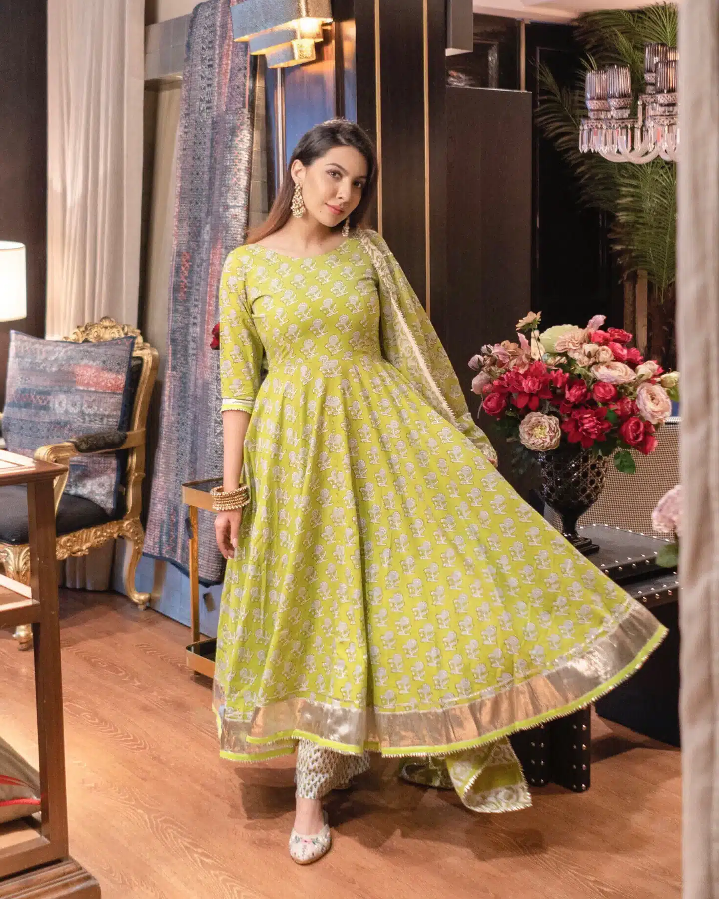 Green Windy Handblock Suit Set – a breezy and enchanting ensemble that captures the essence of natural beauty and artisanal craftsmanship.