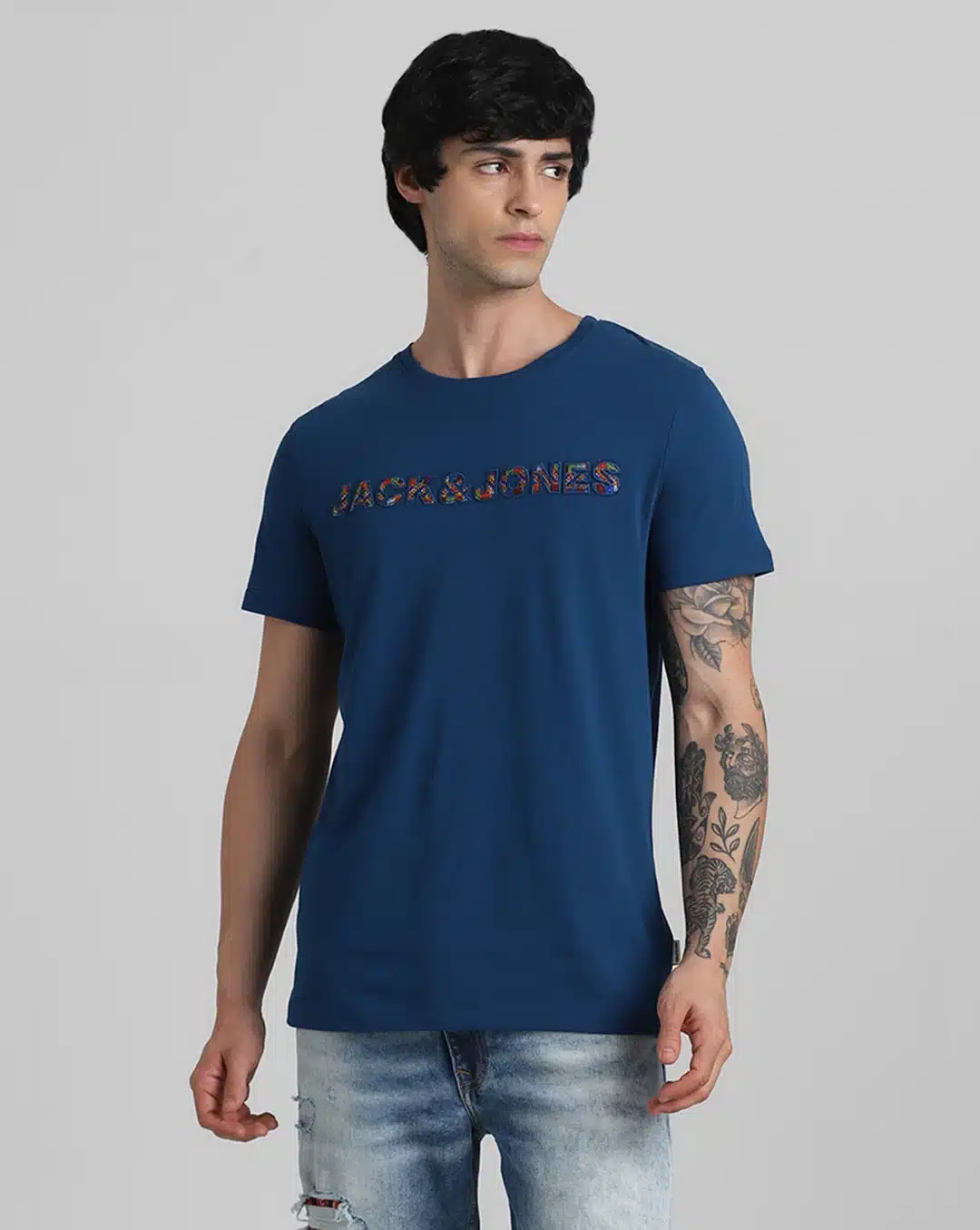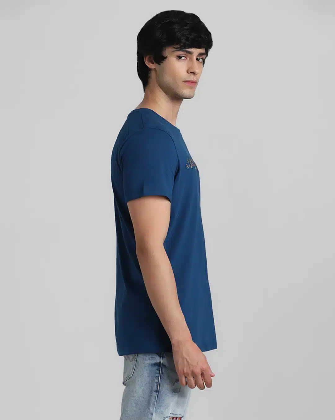 Kutch Blue Embroidered Slim Fit T-shirt. Crafted with meticulous attention to detail, this shirt seamlessly blends traditional craftsmanship with modern style.