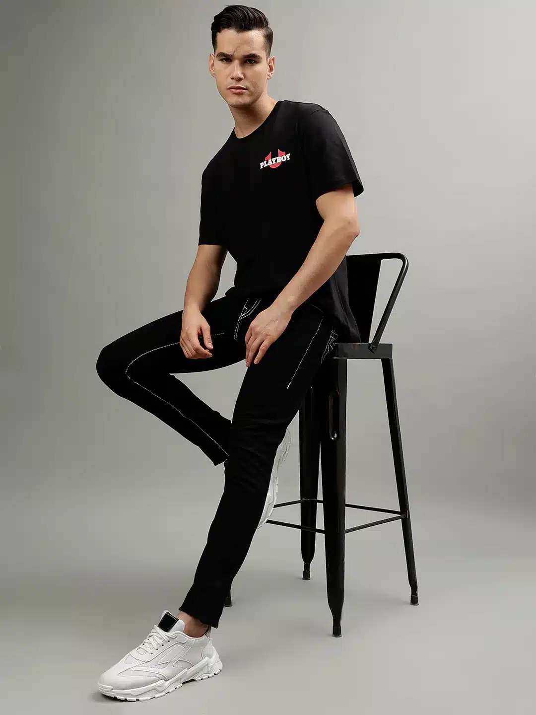 In classic black, this t-shirt serves as a wardrobe essential, providing a versatile canvas for any ensemble. The stylish print adds a touch of personality, making a statement without overwhelming your look.
