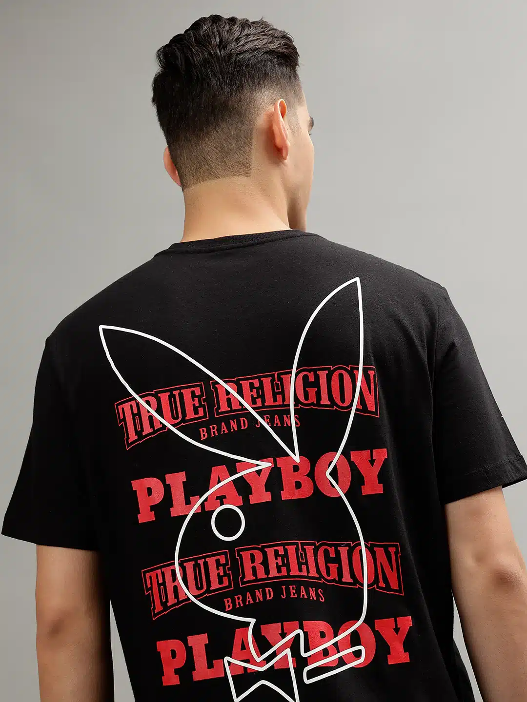 Men’s Black Printed Round Neck Short Sleeve T-shirt. Crafted with meticulous attention to detail, this shirt effortlessly combines contemporary style with timeless comfort.