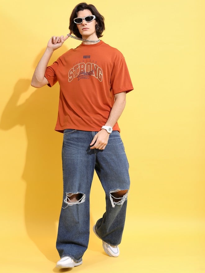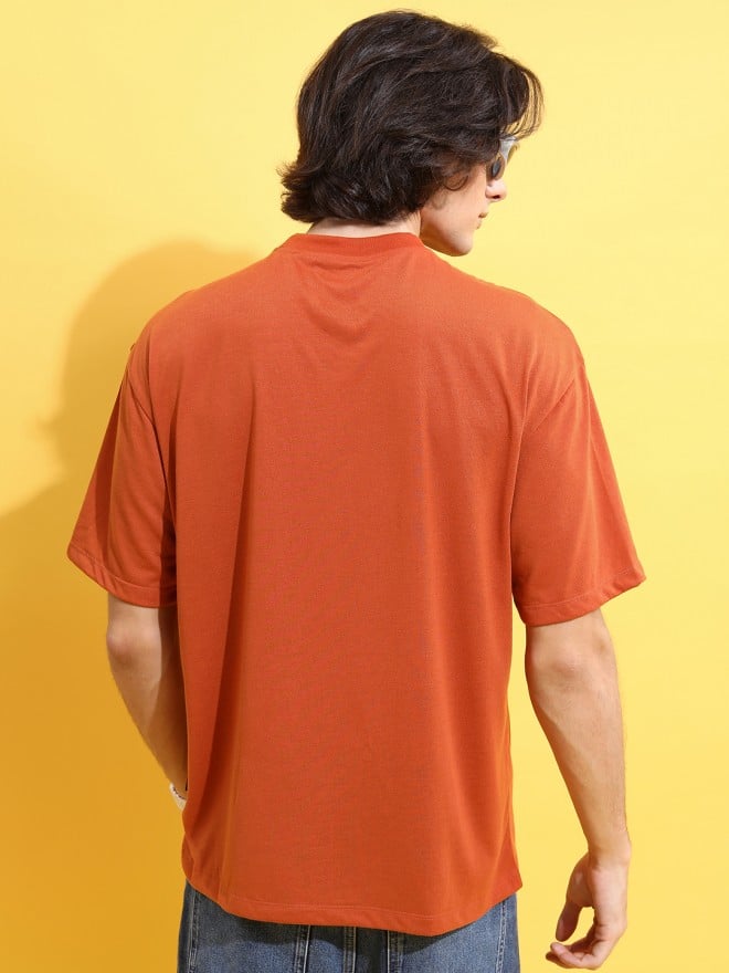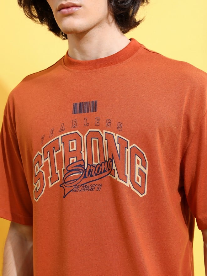 Men’s Terracotta Printed Round Neck T-Shirt. Crafted with meticulous attention to detail, this shirt effortlessly blends rustic charm with contemporary style.