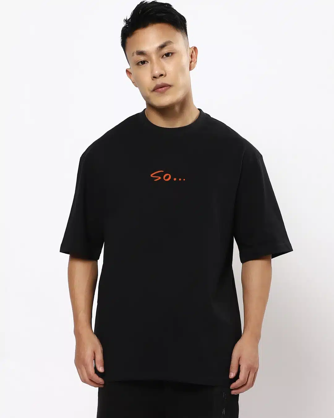 Pair it with your favorite jeans or trousers for a versatile look that exudes confidence and sophistication. With the Men’s Black “So Typography” Oversized T-shirt, you can showcase your unique style and make a lasting impression wherever you go.