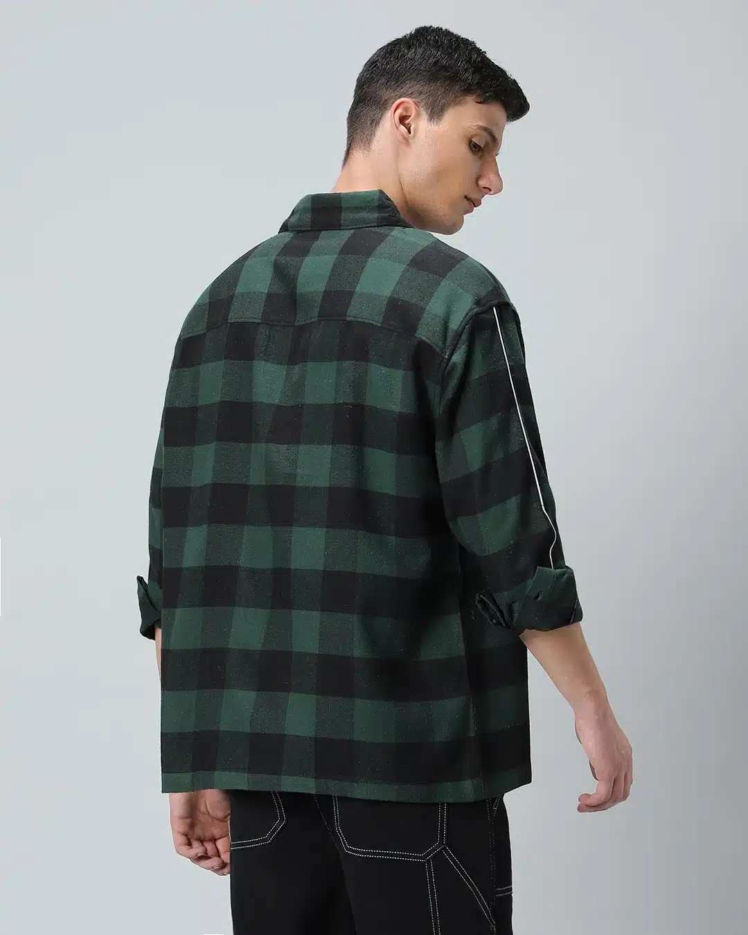 Men’s Green & Black Hang Checked Oversized Shirt – a bold fusion of style and comfort that redefines casual sophistication. This shirt isn’t just a piece of clothing; it’s a fashion statement that exudes confidence and individuality.