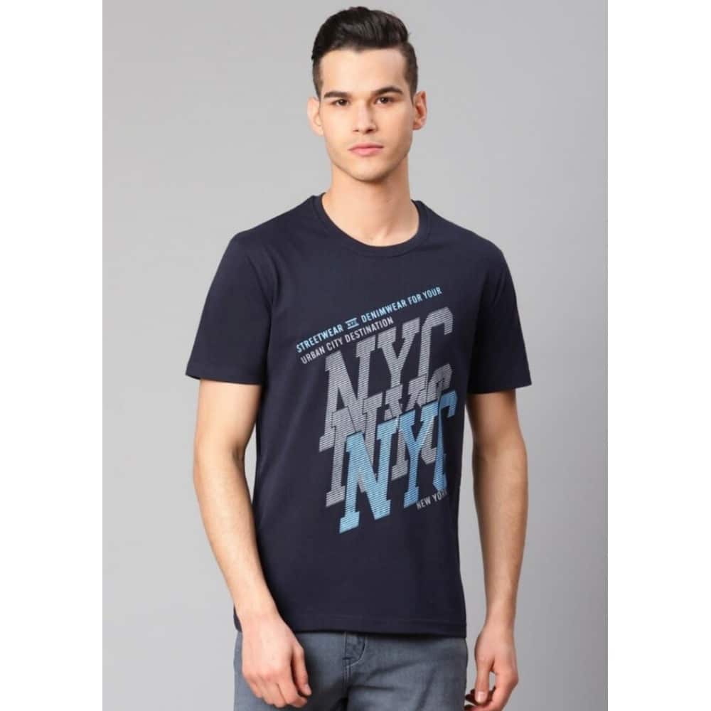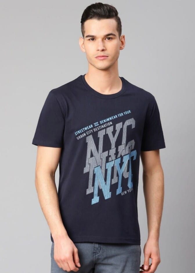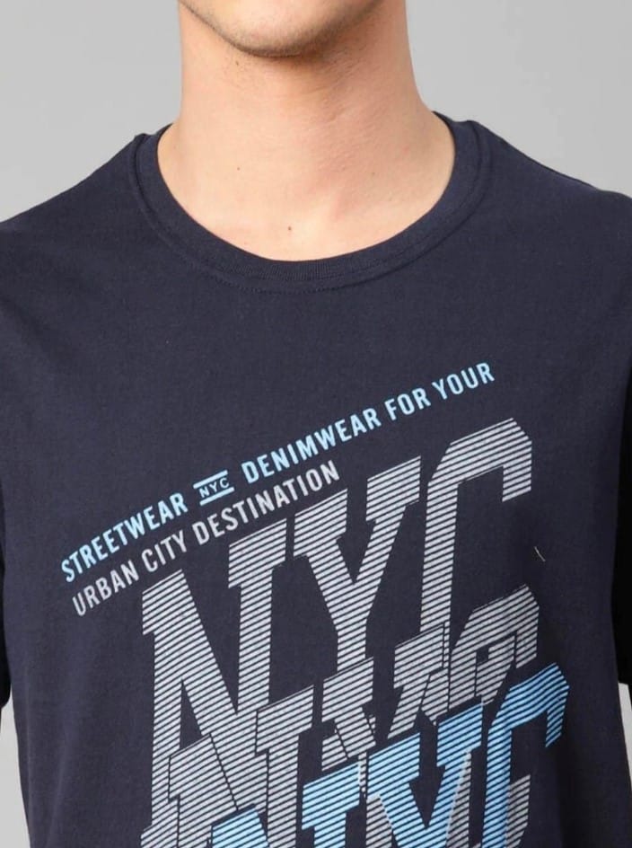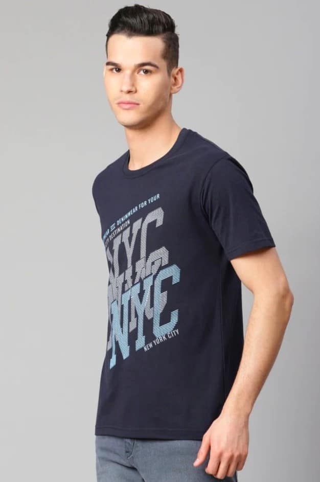 Men’s Half Sleeve Round Neck Cotton T Shirt (Navy Blue)