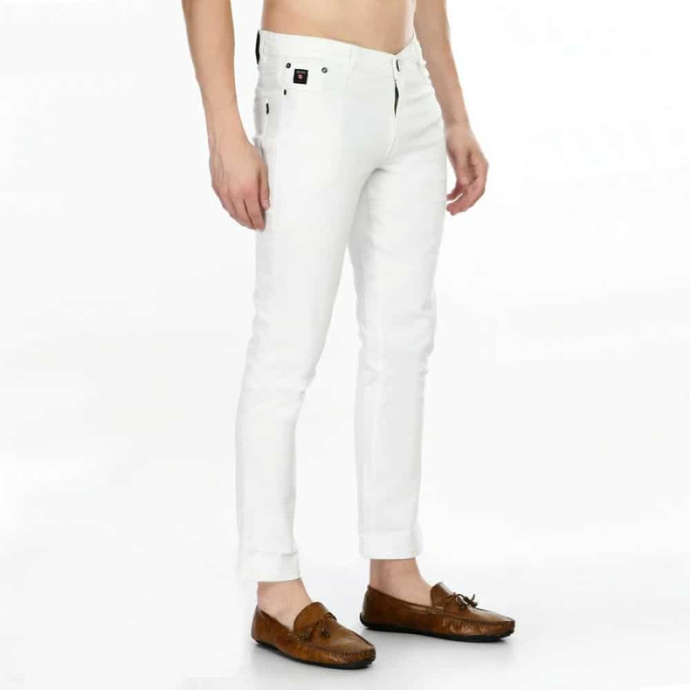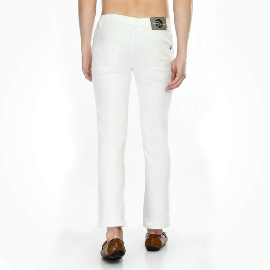 Men’s Regular Fit Denim Mid Rise Jeans (White)