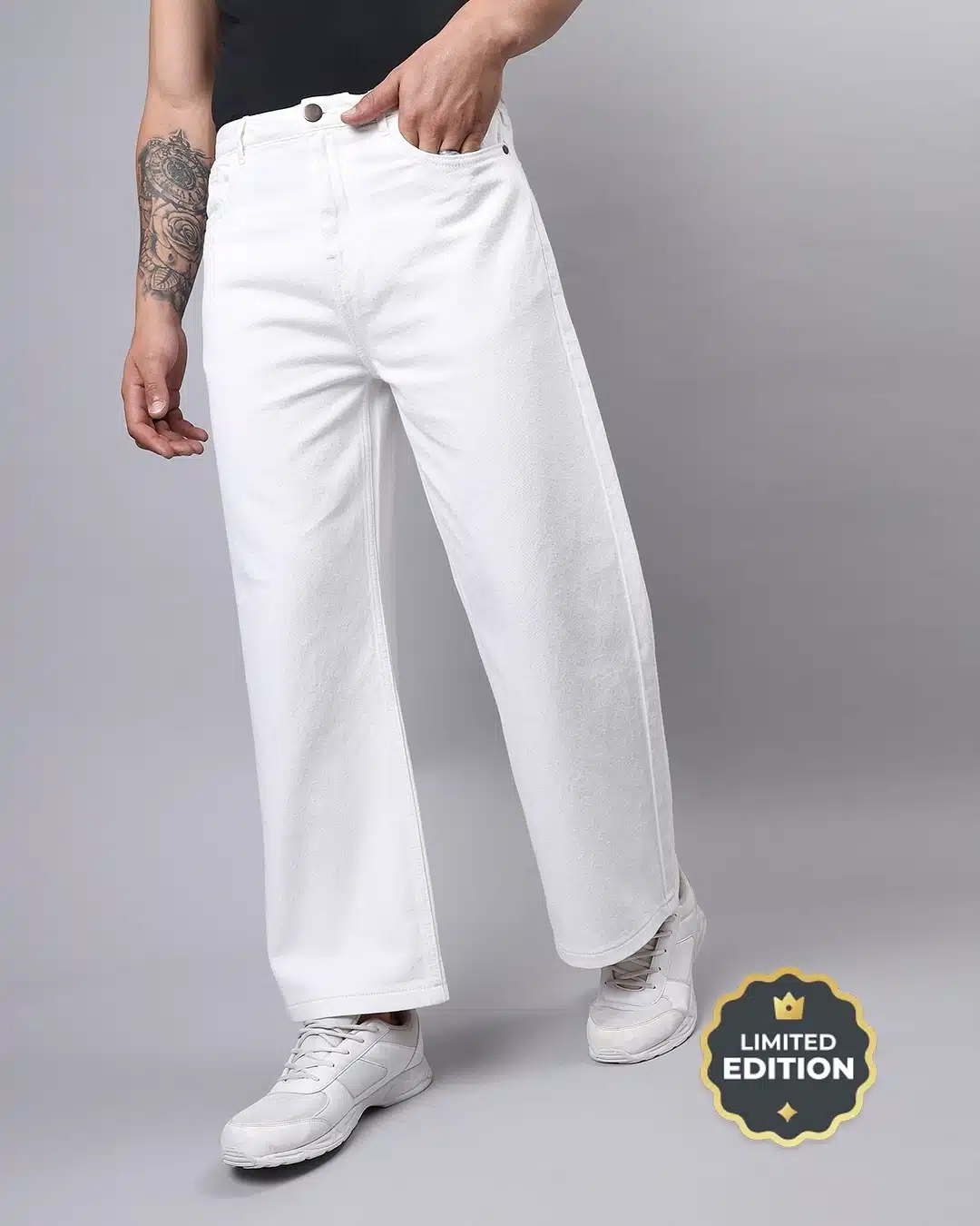 Elevate your denim game with Men’s White Baggy Wide Leg Jeans and experience the perfect fusion of comfort, style, and individuality. Whether paired with a graphic tee for a casual look or dressed up with a button-down shirt for a night out, these jeans are sure to become a wardrobe favorite.