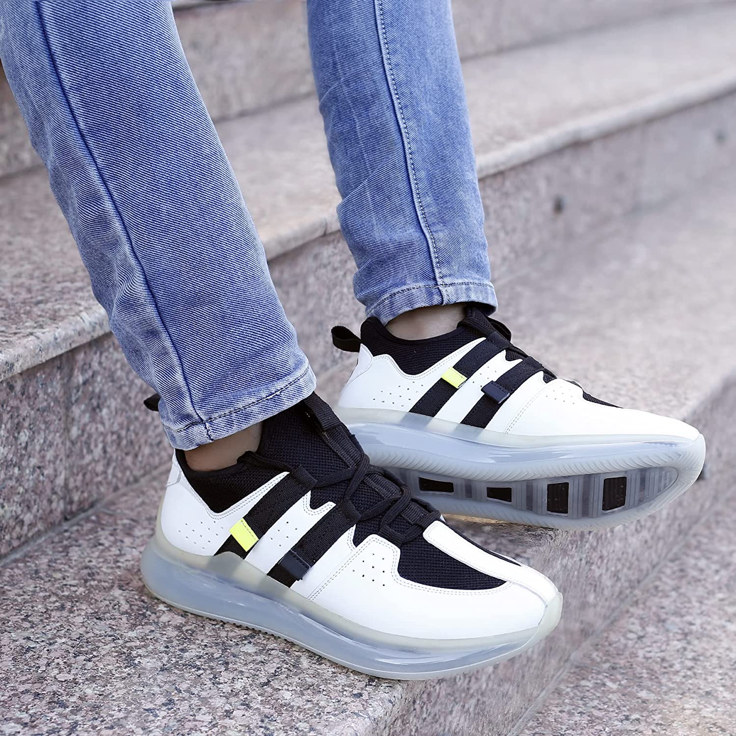 - STREET STYLE CHUNKY DESIGN: The Fashion sneakers upper and sole are design with lightweight and eliminate the excess lining material, using the PU to overlay with micro fiber pieces, the piercing dots as embellishments, Solid Color for visual impact, showing the trend of street style.