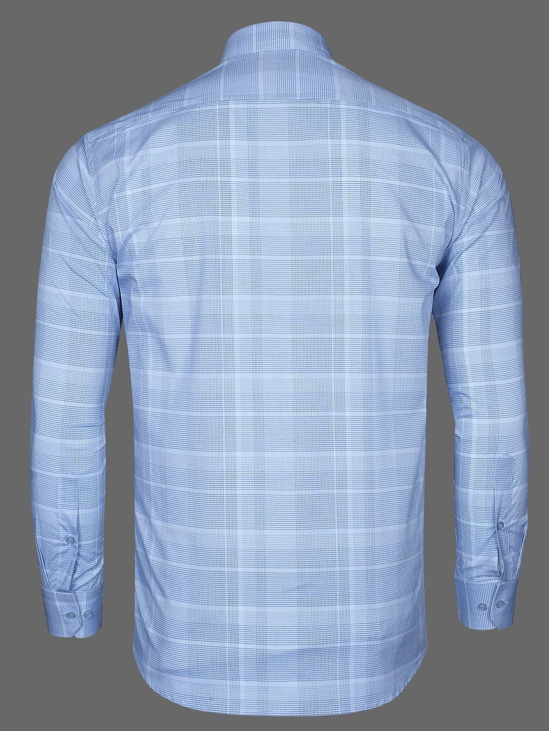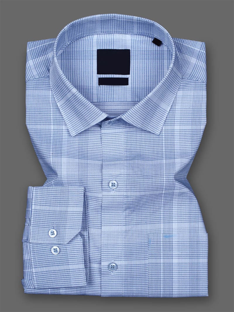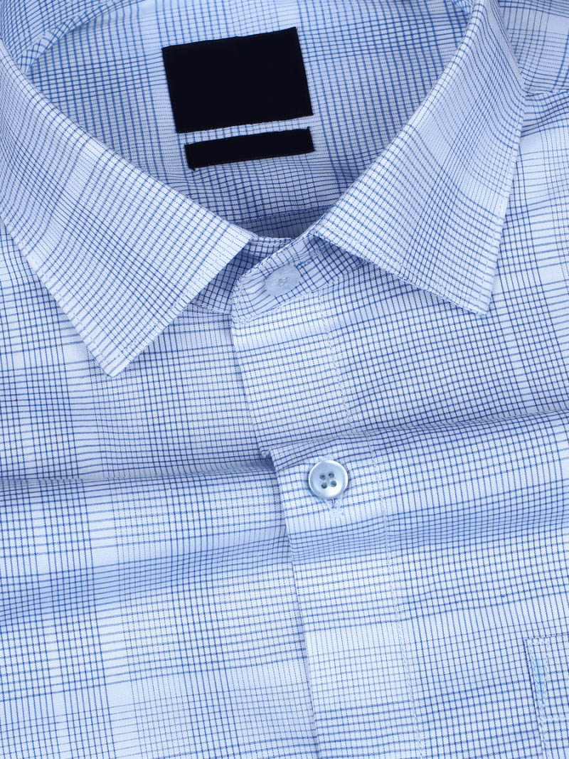 Off White With Pastel Blue Checkered Premium Cotton Designer Shirt