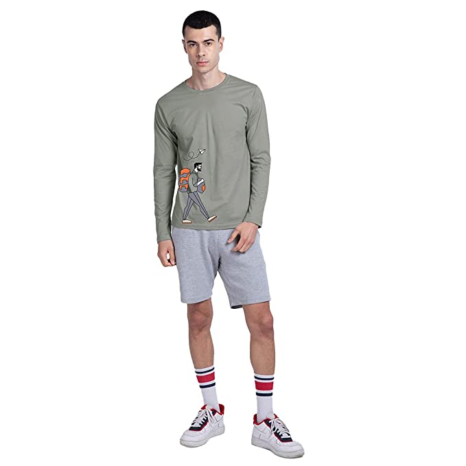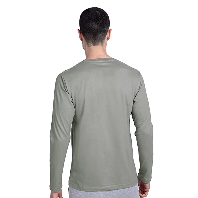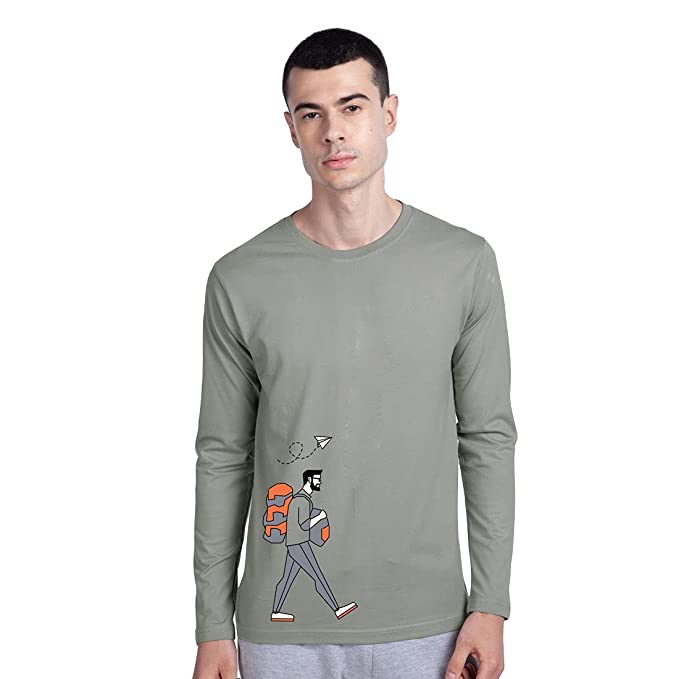 Printed Cotton Round Neck, Full Sleeves T-Shirt For Men’s (Grey)