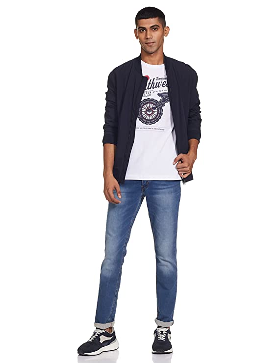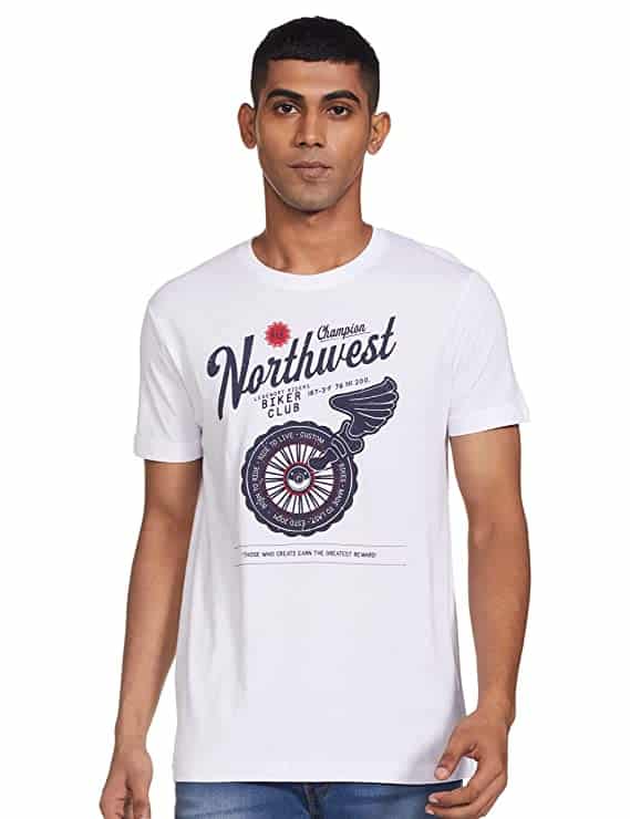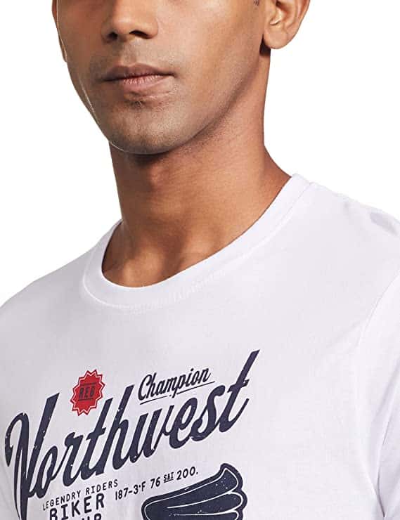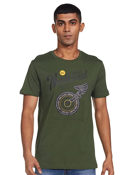 Printed Crew Neck Slim Fit T-Shirt For Men’s (White, Green)