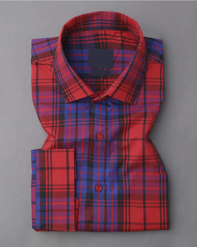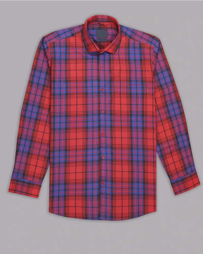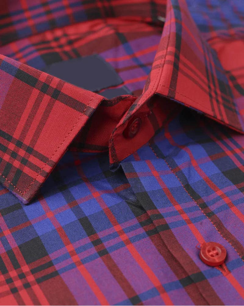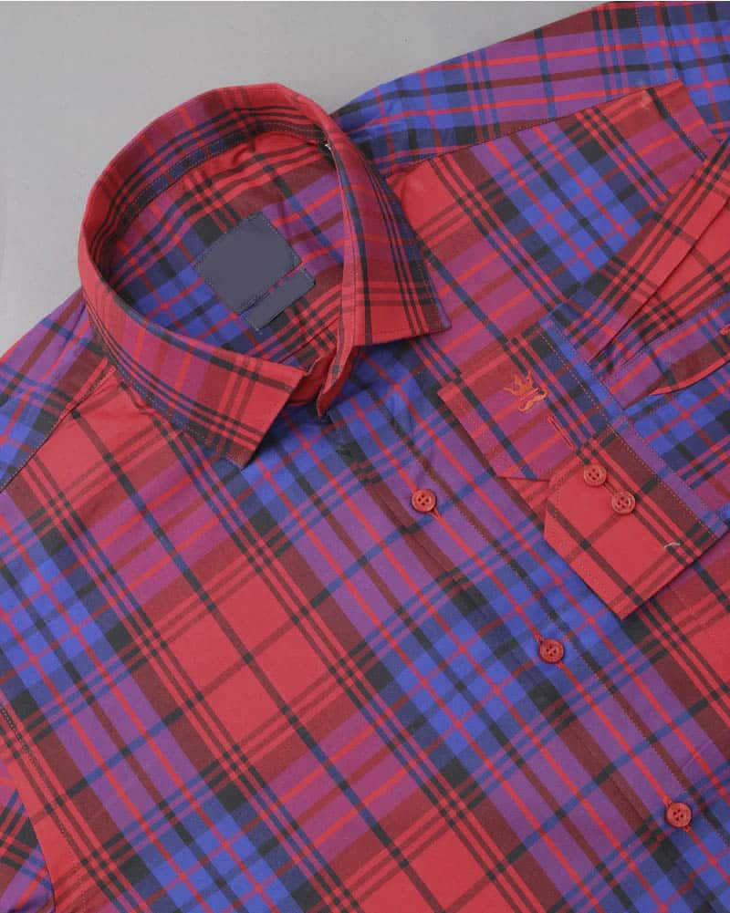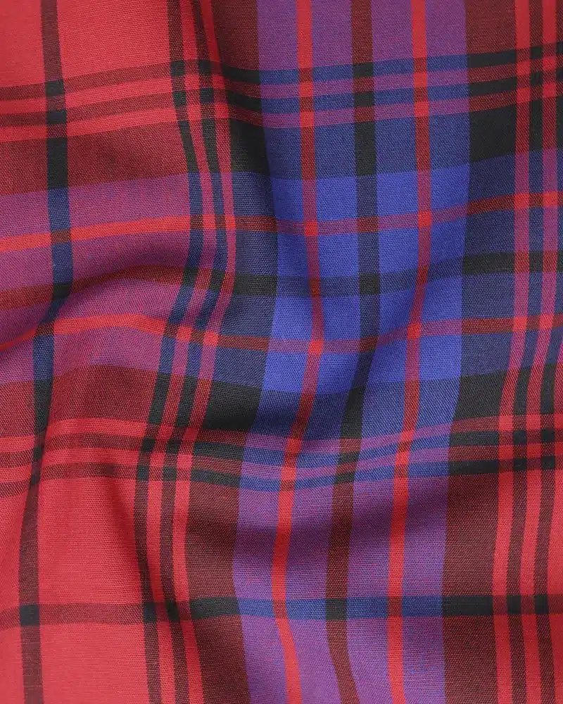 Red And Blue Plaid Dobby Textured Premium Giza Cotton Shirt
