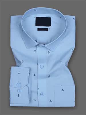 Sky Blue Anchor Pattern Premium Cotton Shirt