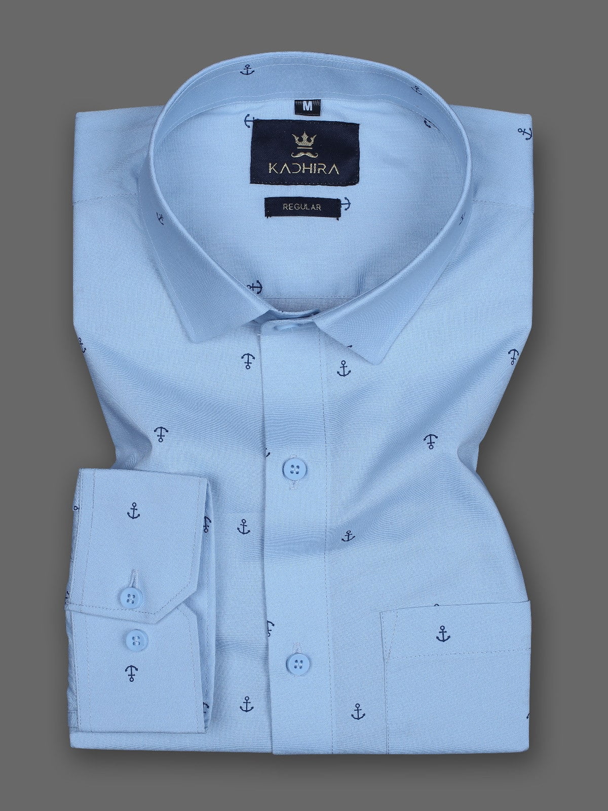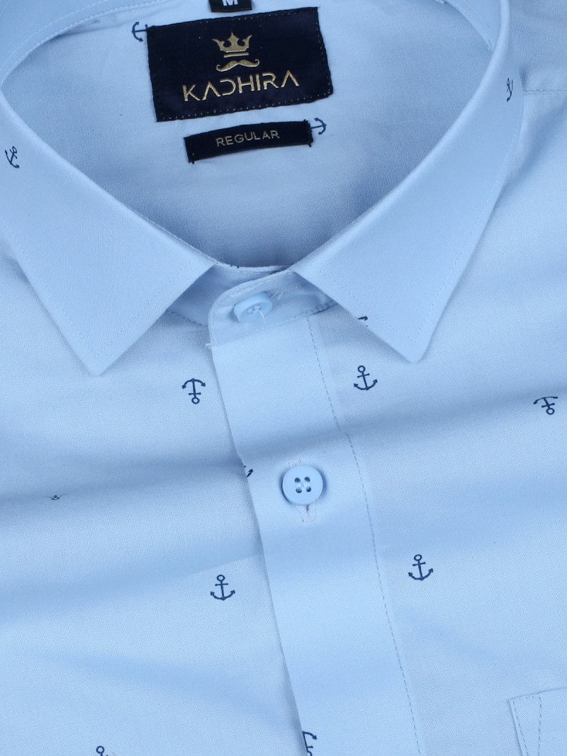Sky Blue Anchor Pattern Printed Cotton Shirt
