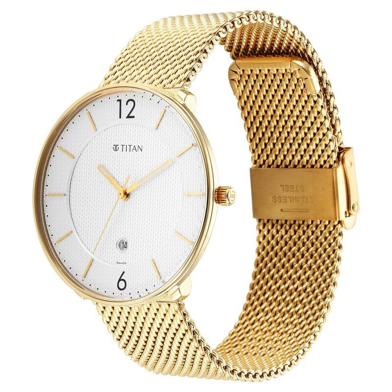 Titan Black and Gold Quartz Analog with Date Silver Dial Stainless Steel Strap Watch for Men – a timeless masterpiece that seamlessly blends classic sophistication with modern elegance, making it the perfect accessory for the discerning gentleman.