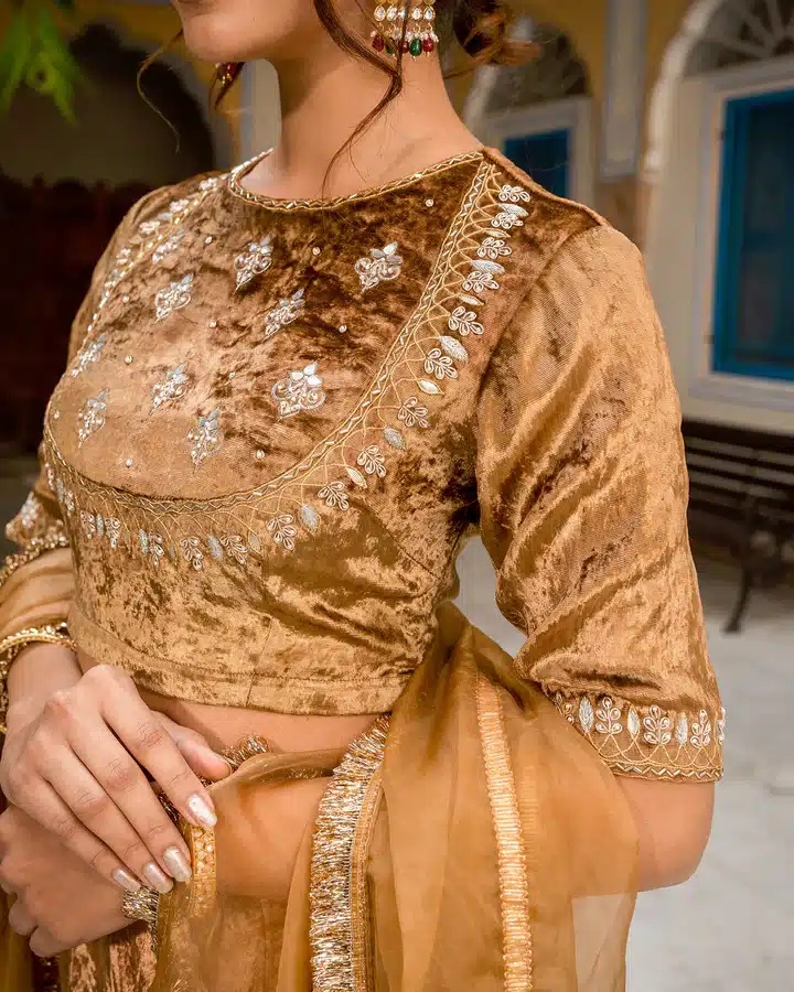 Umber Kalidaar Lehenga Set, a true embodiment of timeless elegance and royal grace. This exquisite ensemble promises to elevate your style to new heights, exuding opulence and sophistication with every step you take.