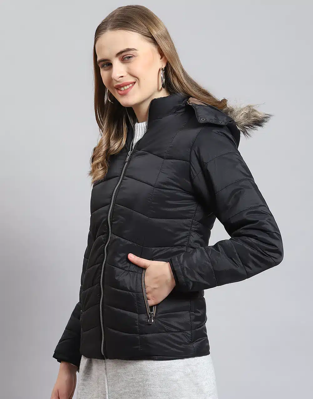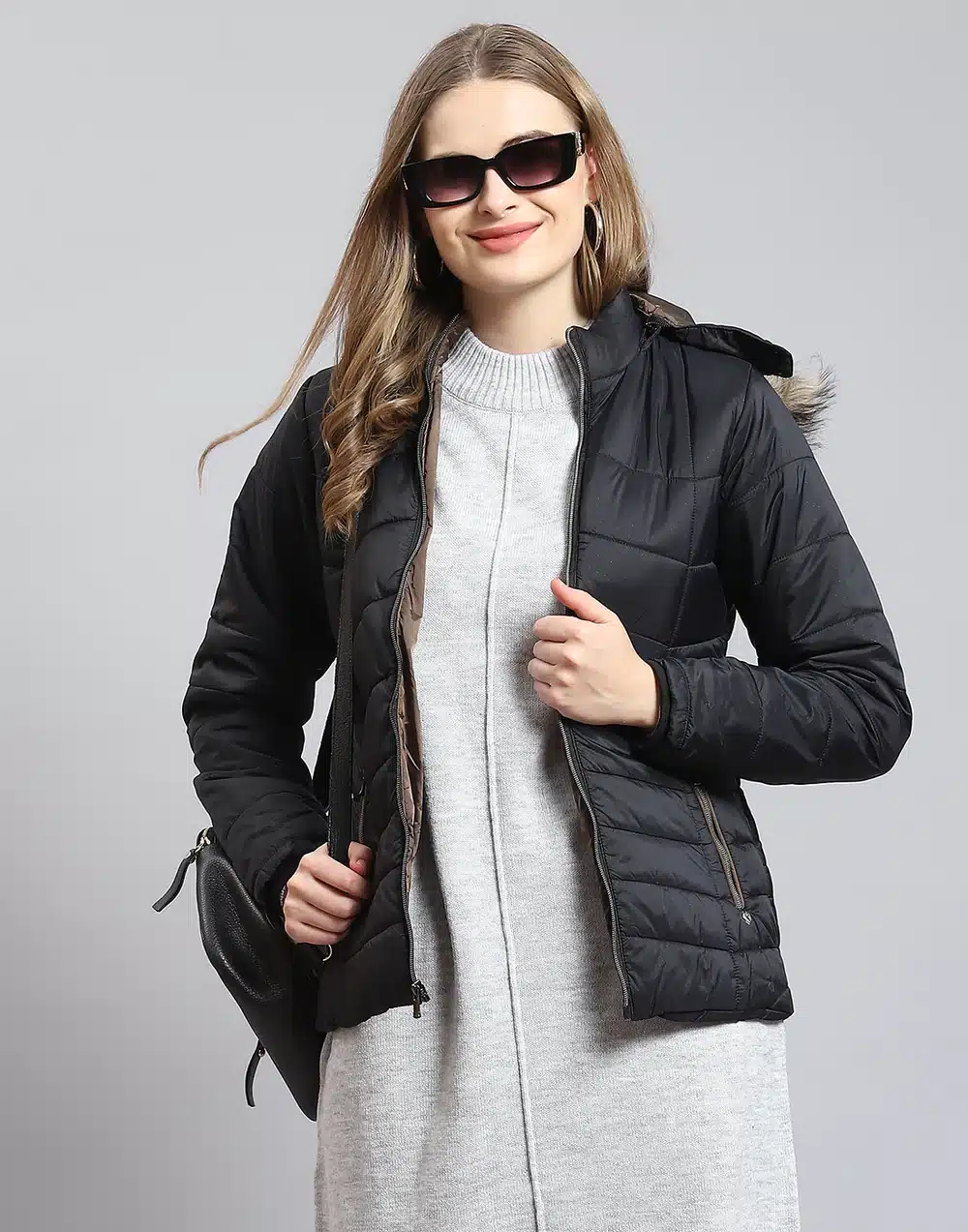 Women’s Black Solid Hooded Full Sleeve Heating Jacket. Crafted to embrace both style and practicality, this innovative piece redefines outerwear.